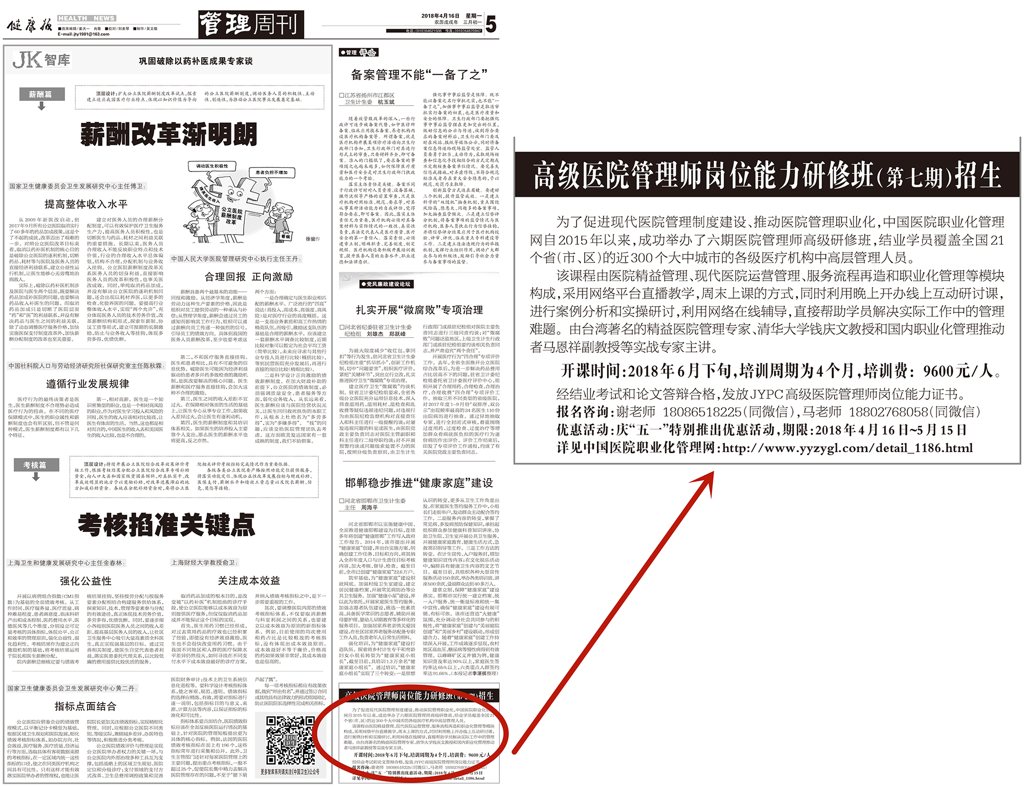 3、取得《高级医院管理师》岗位能力认证者,“中国医院职业化管理网”负责指导医院管理职业生涯规划制订、管理转岗及医院投资创业就业指导。