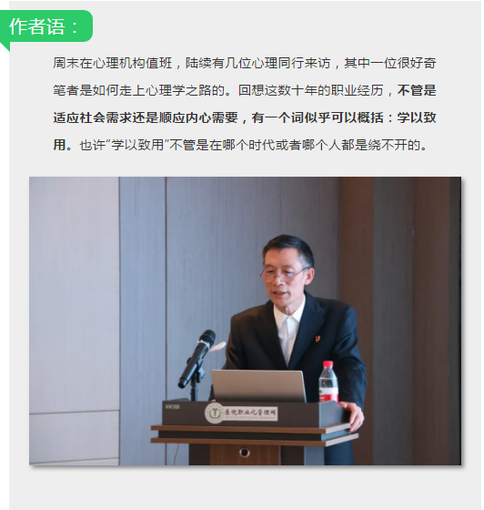 “学以致用”——30载心理学职业生涯从业心得