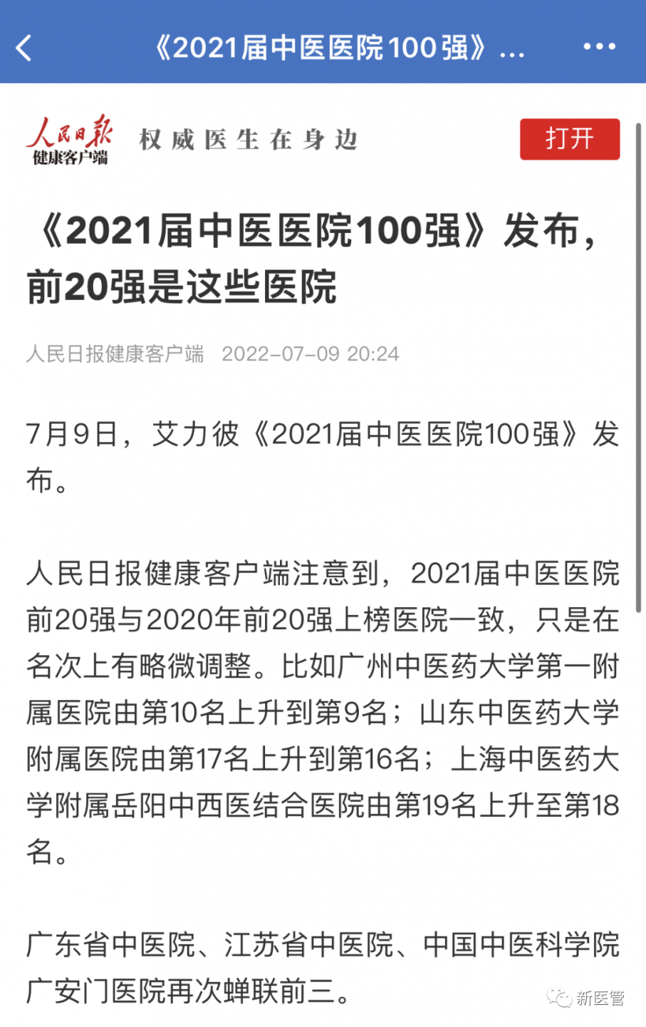 权威媒体人民日报发布全国《2021届百强中医院》,其中排名前20强,到底有多少医院开设了心理门诊心理科室呢?