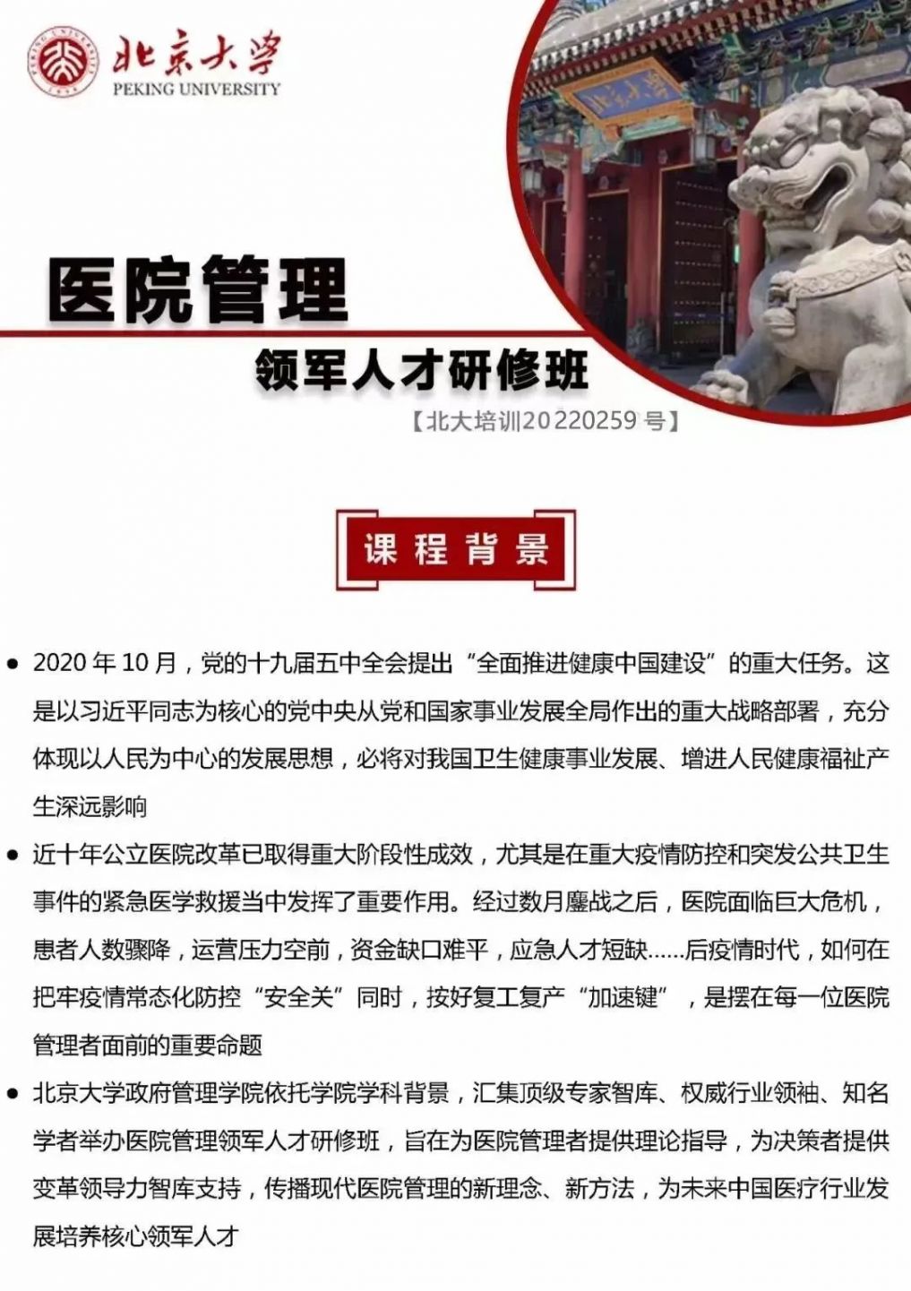 【推荐】医院管理领军人才培养计划---北京大学医院管理领军人才研修班报名中【北大培训20220259号】